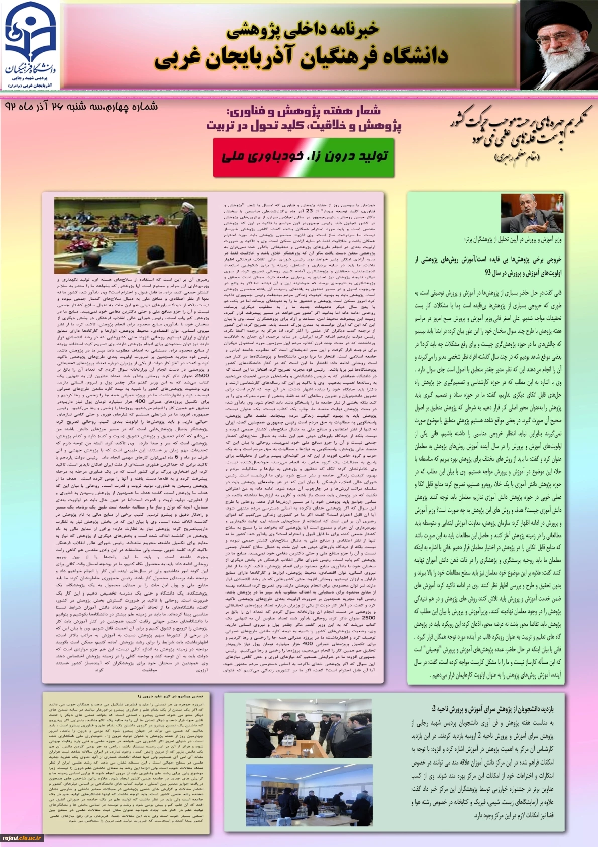 امتیاز دهید : چهارمین نسخه نشریه پژوهشی پردیس شهید رجایی آذربایجان غربی به مناسبت هفته پژوهش شنبه 30 آذر 1392 ساعت 14:49