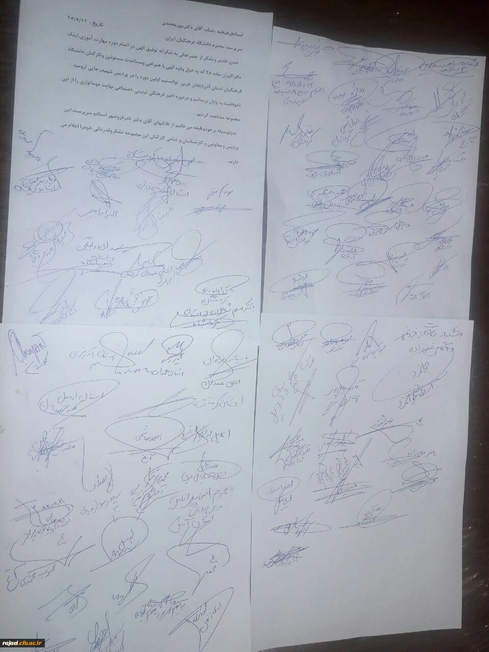 با امضا طومار تشکر و قدردانی مهارت آموزان ماده 28 از زحمات ریاست محترم و کارکنان پردیس شهید رجایی ارومیه