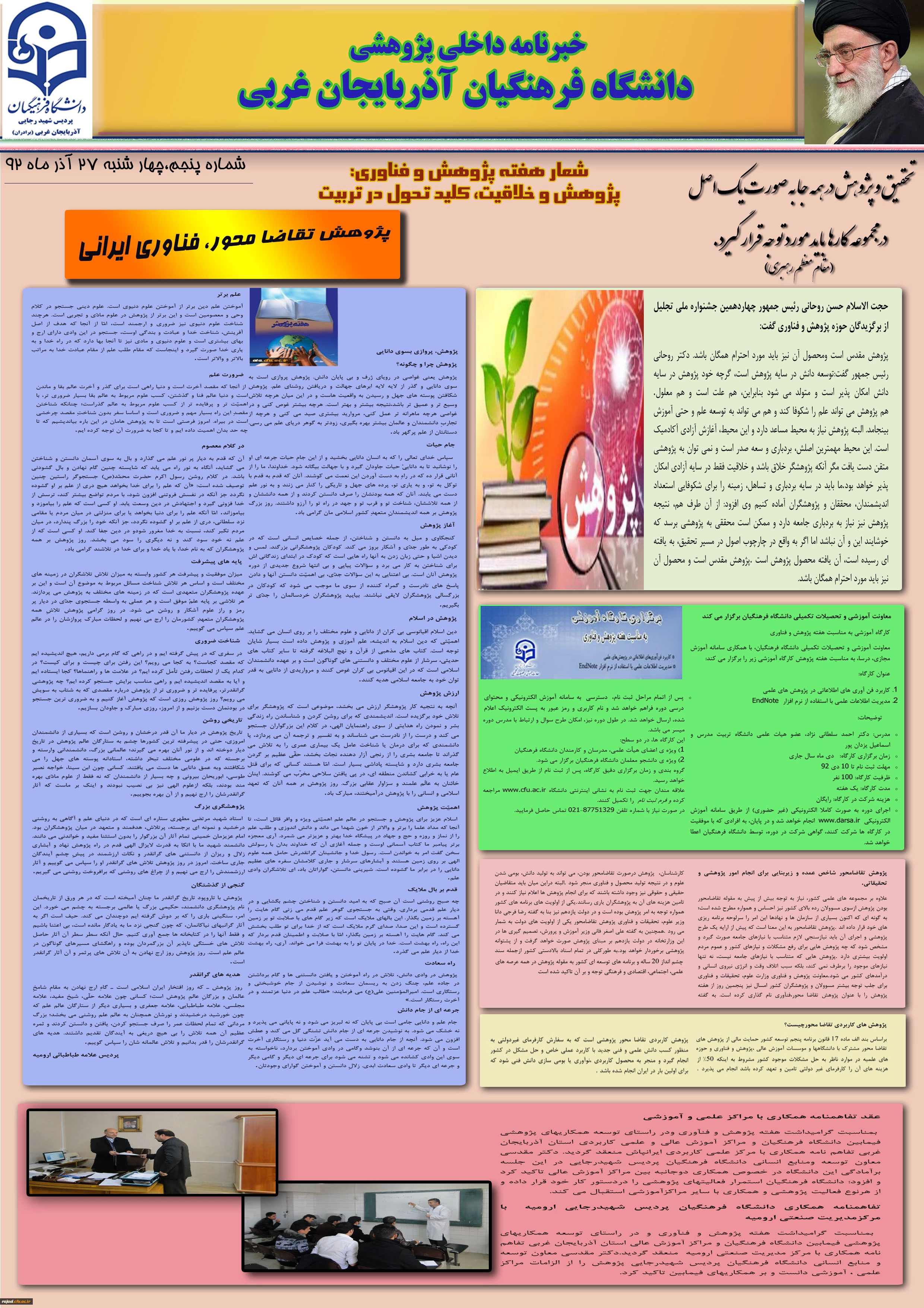 امتیاز دهید : پنجمین نسخه نشریه پژوهشی پردیس شهید رجایی آذربایجان غربی به مناسبت هفته پژوهش سهشنبه 3 دی 1392 ساعت 8:40