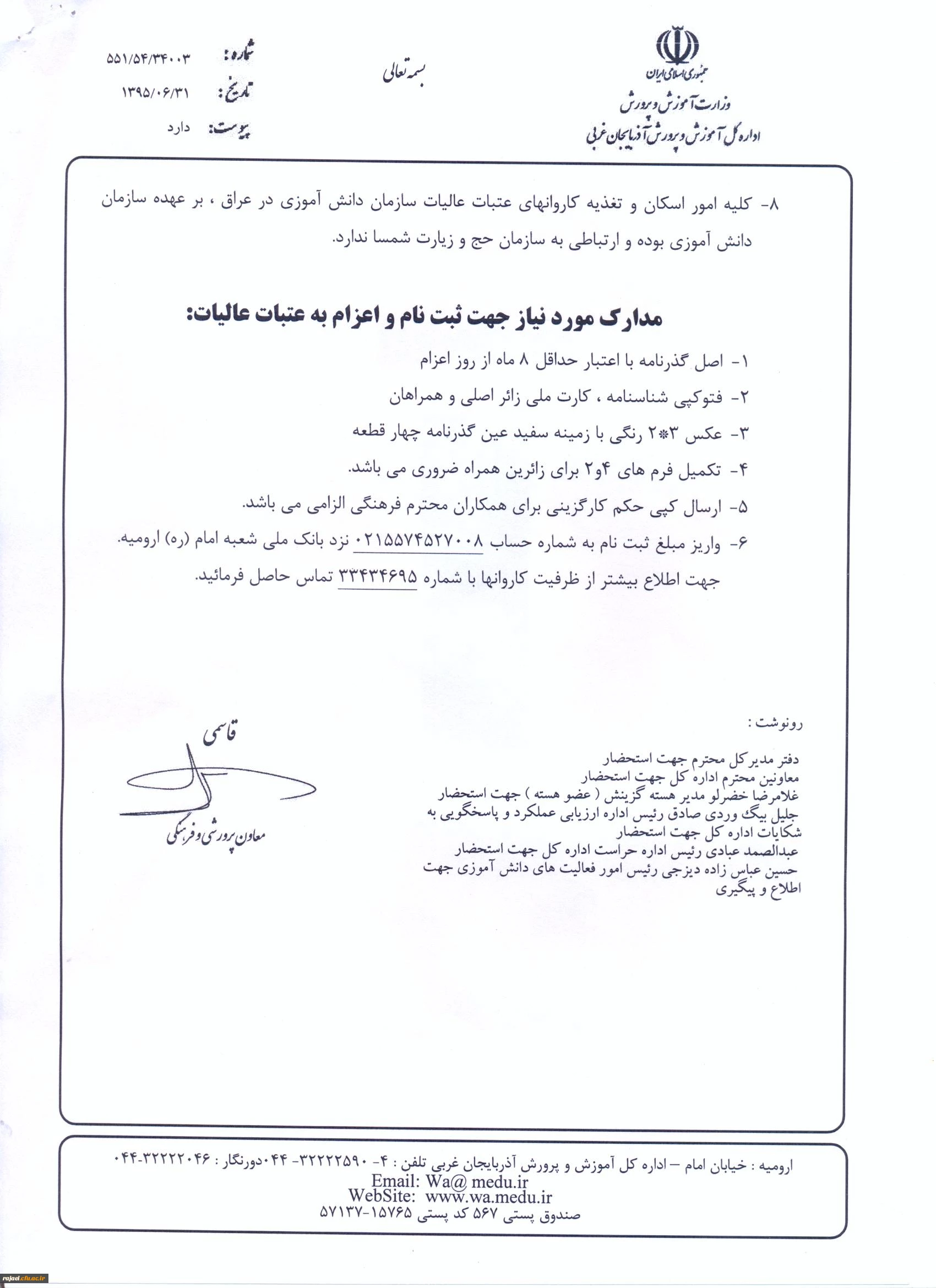 ثبت نام عتبات عالیات برای کارکنان و دانشجو معلمان توسط سازمان دانش آموزی اداره کل آموزش و پرورش استان آذربایجان غربی 2