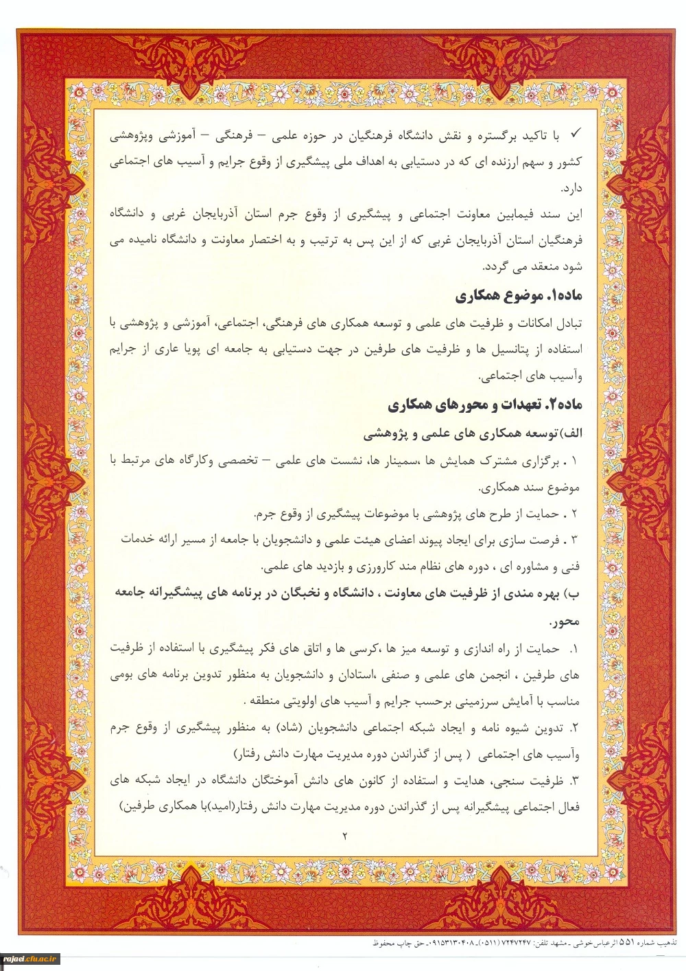 عقد تفاهم نامه همکاری مابین دانشگاه فرهنگیان و معاونت محترم اجتماعی و پیشگیری از وقوع جرم دادگستری استان 7