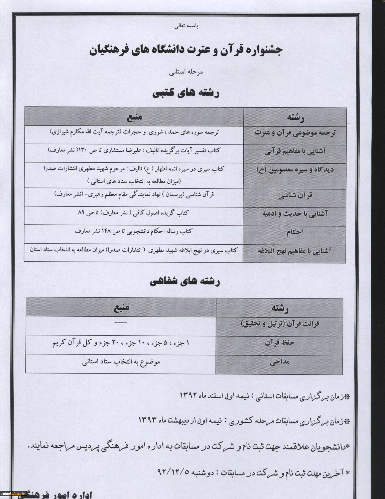 امتیاز دهید : فراخوان ثبت نام در جشنواره مسابقات قرآن و عترت دانشگاه فرهنگیان دوشنبه 7 بهمن 1392 ساعت 12:53