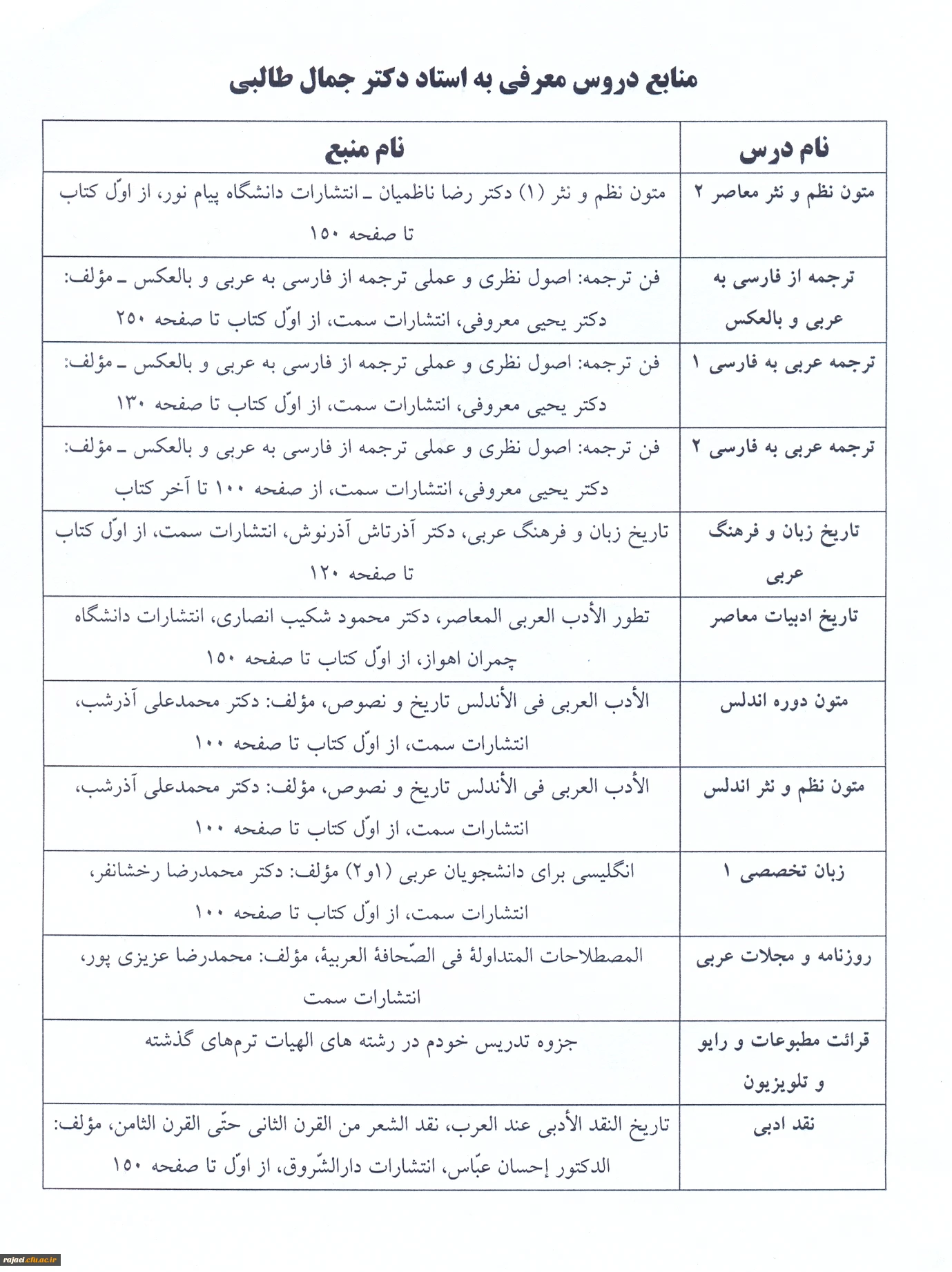 منابع دروس معرفی به استاد دکتر جمال طالبی 2