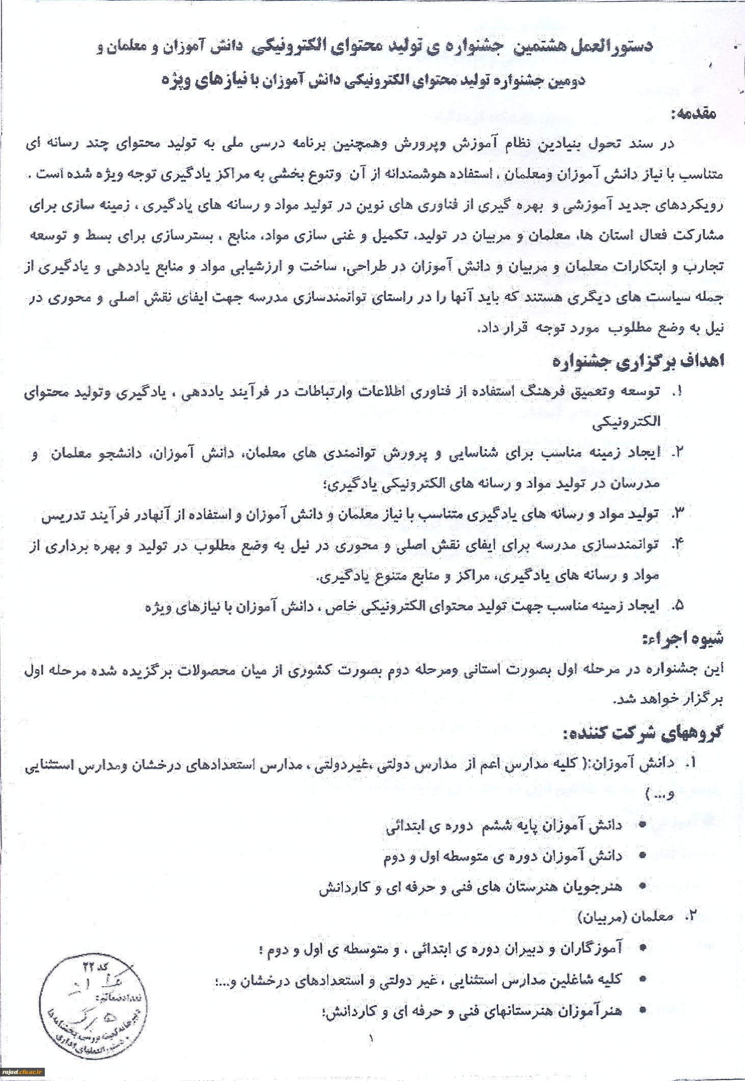 دستورالعمل برگزاری جشنواره تولید محتوای الکترونیکی 2