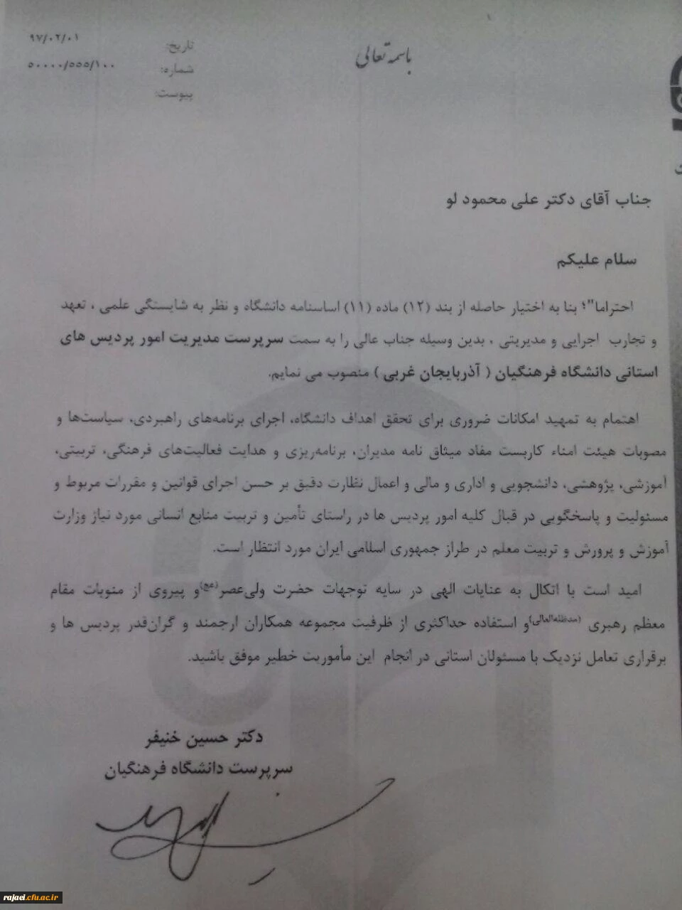 انتصاب دکتر محمودلو به عنوان سرپرست جدید مدیریت امور پردیس های استان آذربایجان غربی