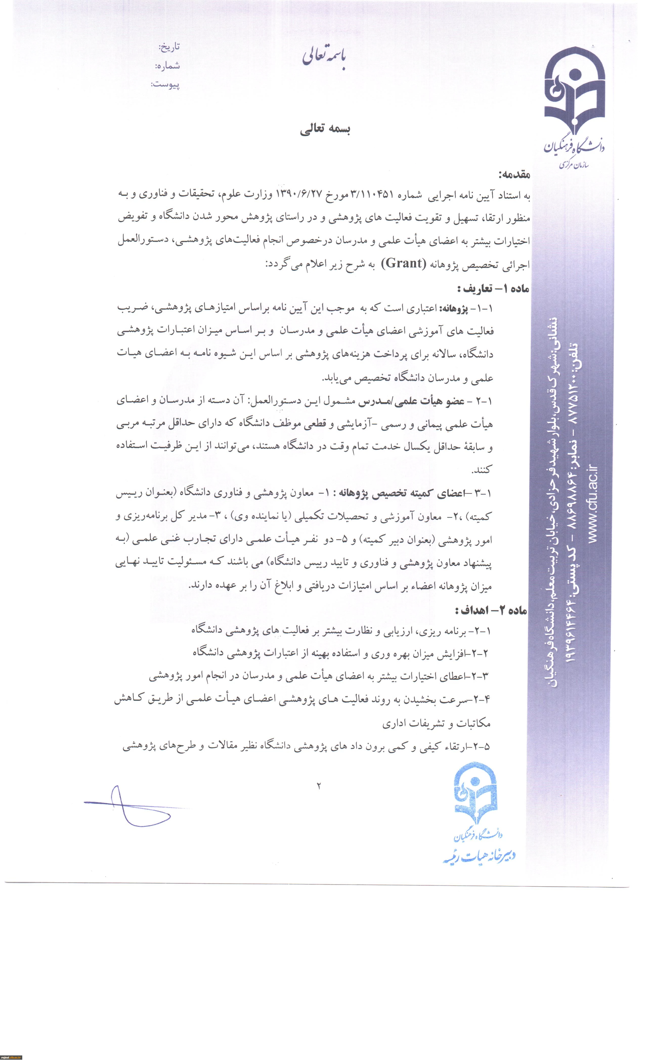 دستورالعمل اجرایی تخصیص پژوهانه 2