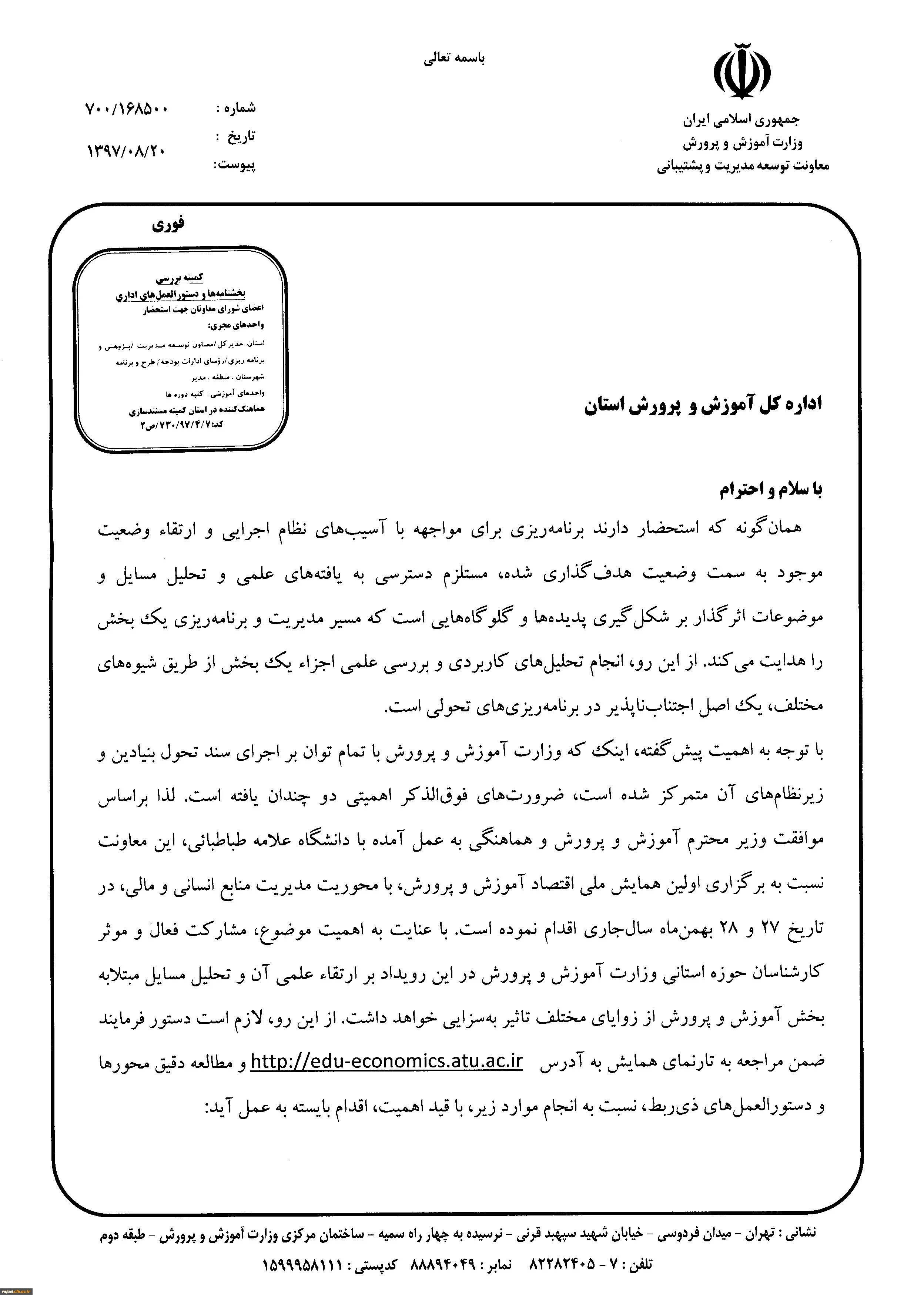 اولین همایش ملی اقتصاد آموزش و پرورش مدیریت منابع انسانی و مالی (چالش ها، مسائل و راهکارها) با تاکید بر تحقق سند تحول بنیادین