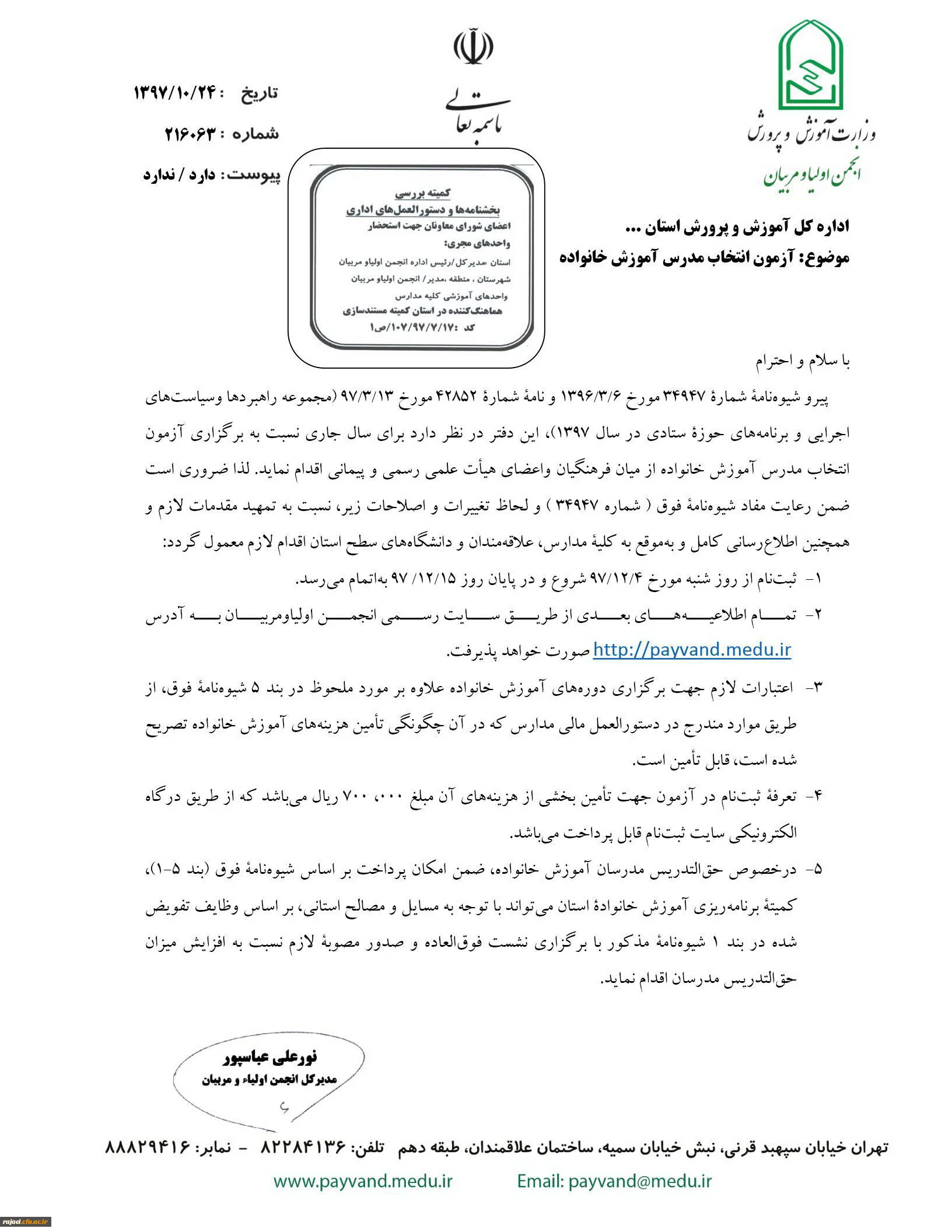 اطلاعیه آزمون انتخاب مدرس آموزش خانواده 2