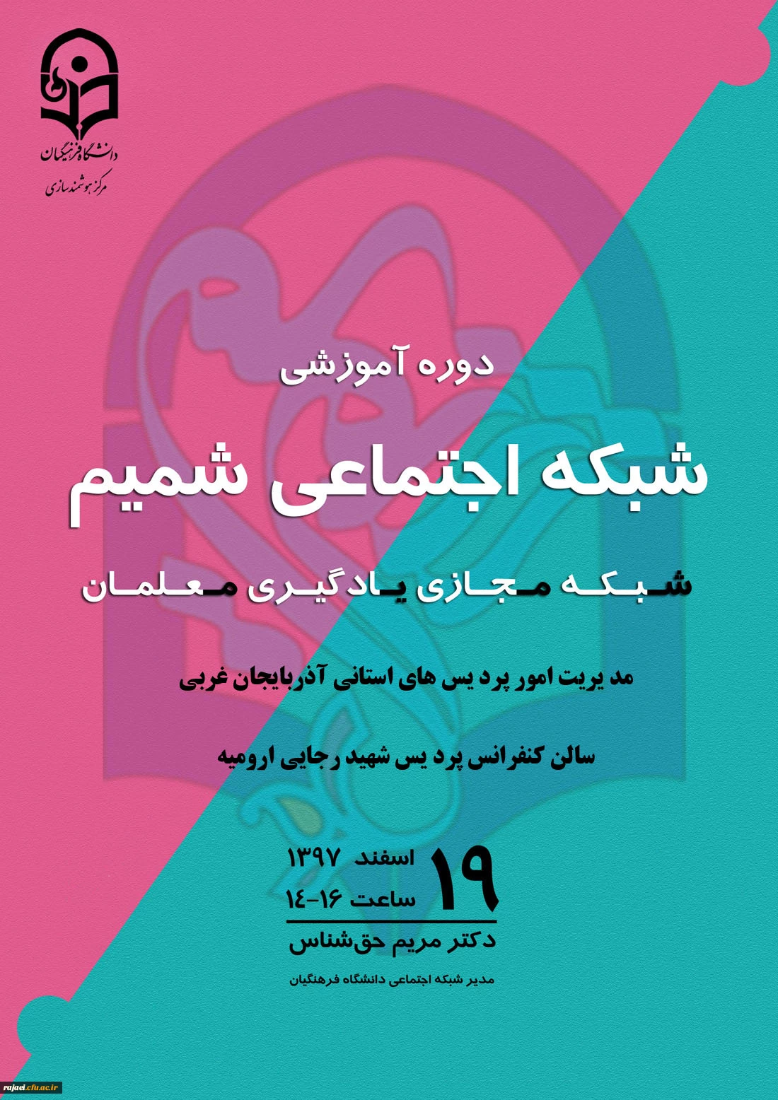 امتیاز دهید : برگزاری دوره آموزشی شبکه اجتماعی شمیم (شبکه مجازی یادگیری معلمان) شنبه 18 اسفند 1397 ساعت 12:05