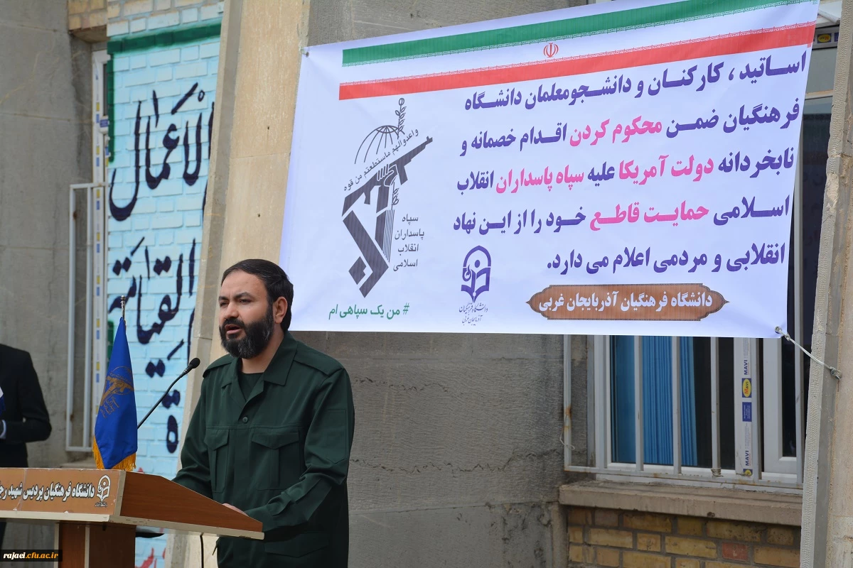 دانشجویان، اساتید وکارکنان دانشگاه فرهنگیان آذربایجان غربی در تجمع اعتراضی خود اقدام نابخردانه و وقیحانه آمریکا را در اعلام نام سپاه پاسداران انقلاب اسلامی در ردیف گروه های تروریستی محکوم نمودند 4
