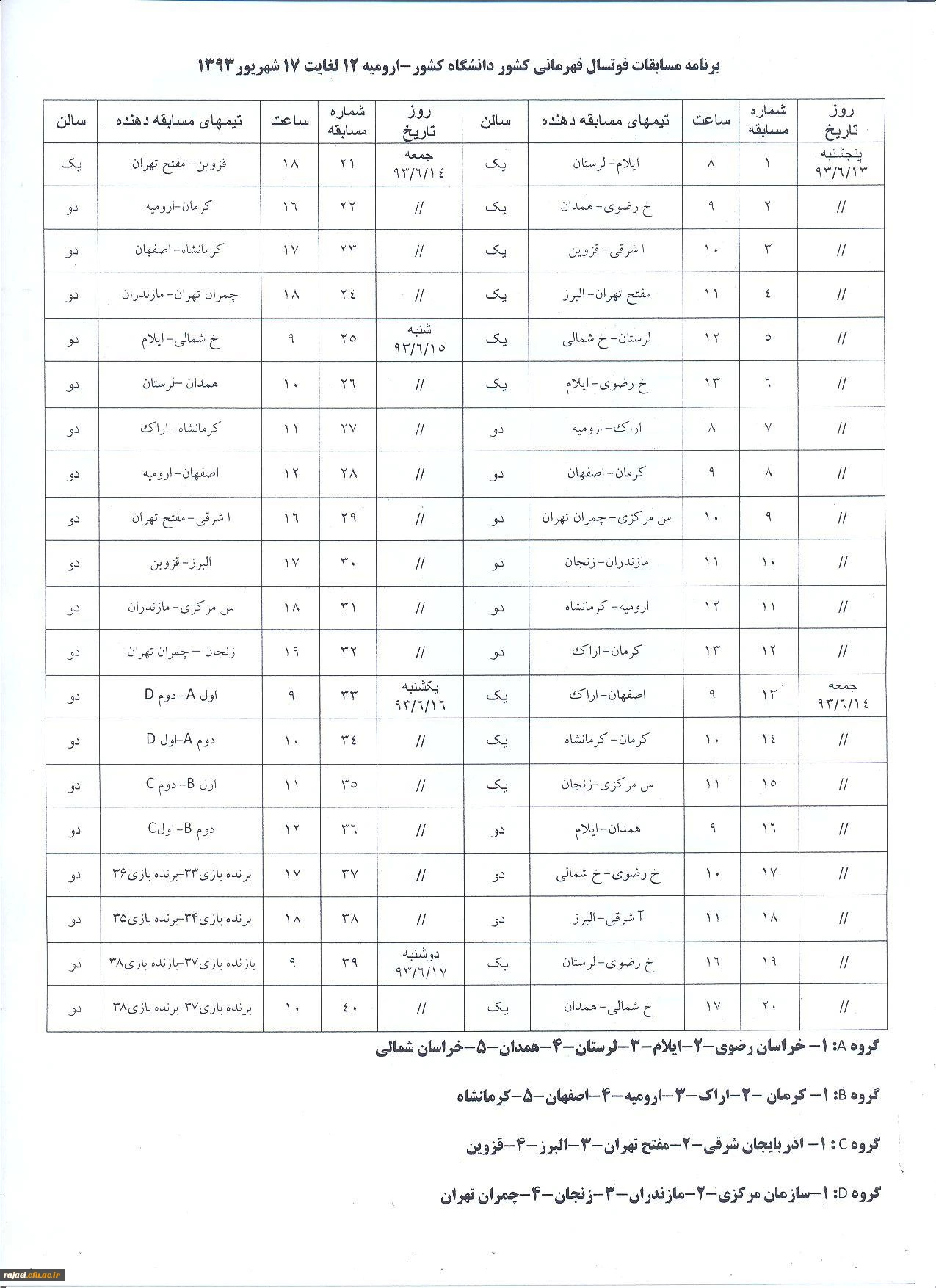 برنامه مسابقات فوتسال المپیاد ورزشی