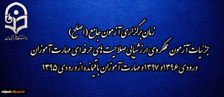 اطلاعیه شماره 2 مرکز سنجش شایستگی های منابع انسانی دانشگاه فرهنگیان: زمان برگزاری آزمون جامع (اصلح) جزئیات آزمون عملکردی ارزشیابی صلاحیت های حرفه ای مهارت آموزان ورودی 1396 و 1397 و مهارت آموزان باقیمانده از ورودی 1395