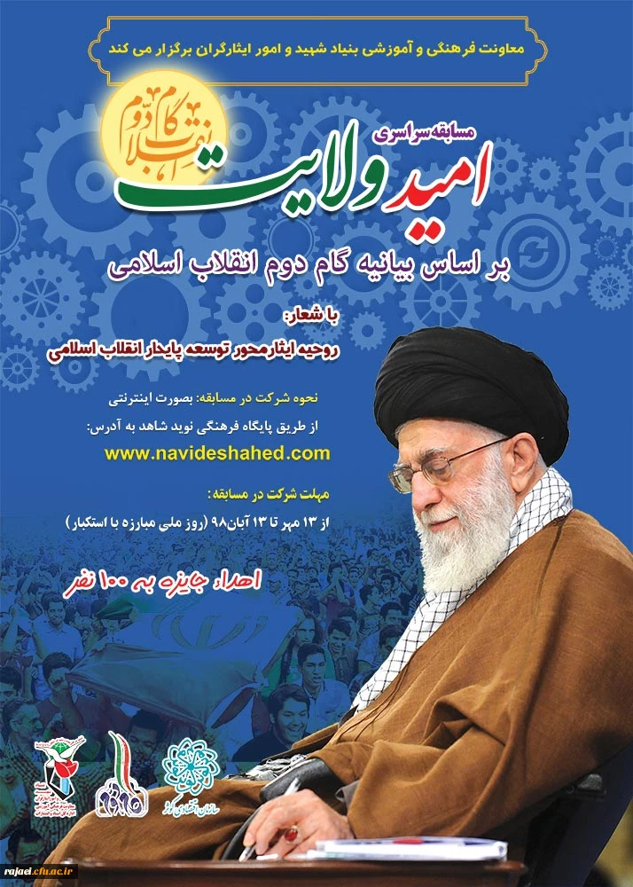 امتیاز دهید : مسابقه سراسری امید ولایت بر اساس بیانیه گام دوم انقلاب اسلامی چهارشنبه 8 آبان 1398 ساعت 10:50