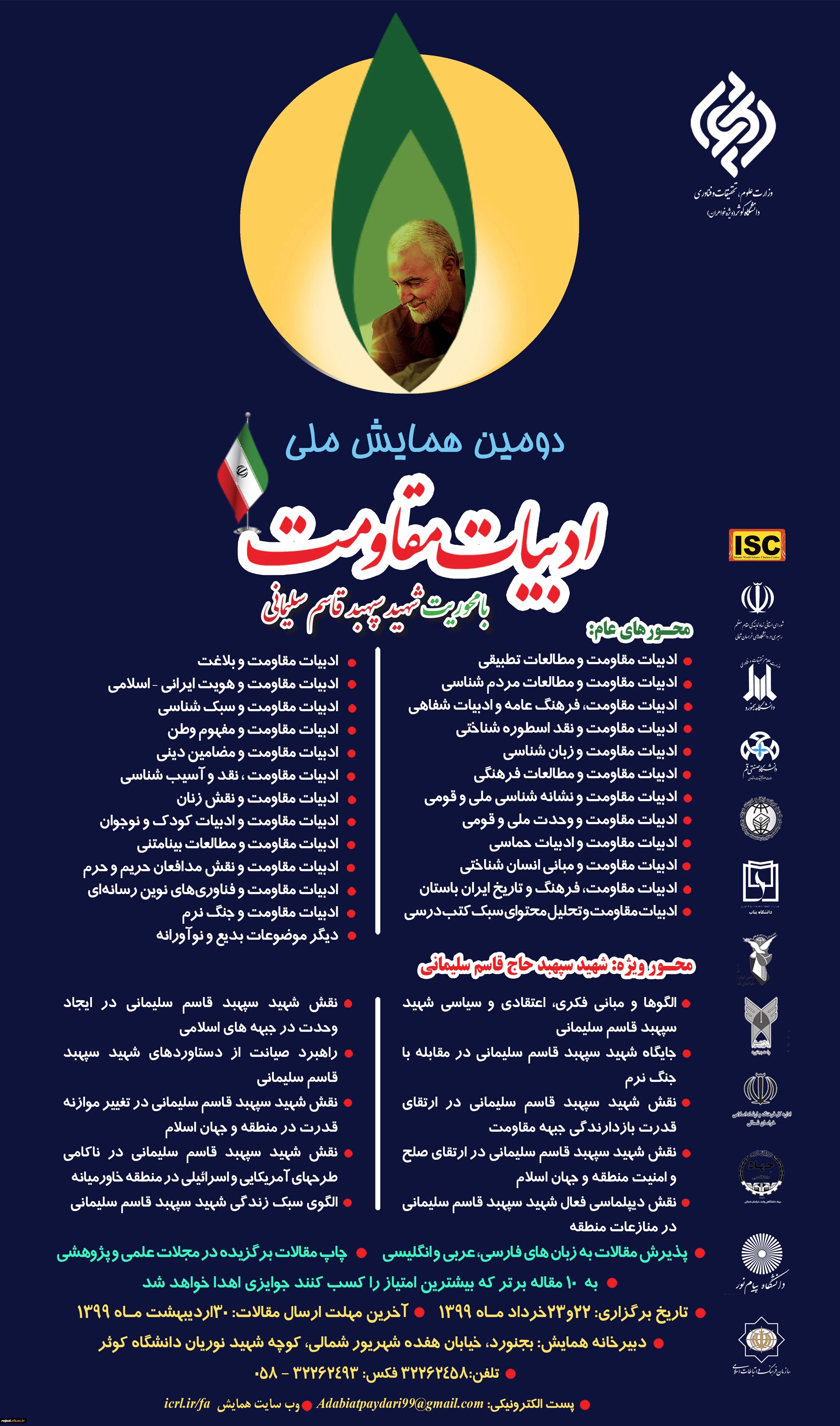 امتیاز دهید : پوستر دومین همایش ملی ادبیات مقاومت با محوریت شهید سپهبد قاسم سلیمانی سهشنبه 1 بهمن 1398 ساعت 15:11