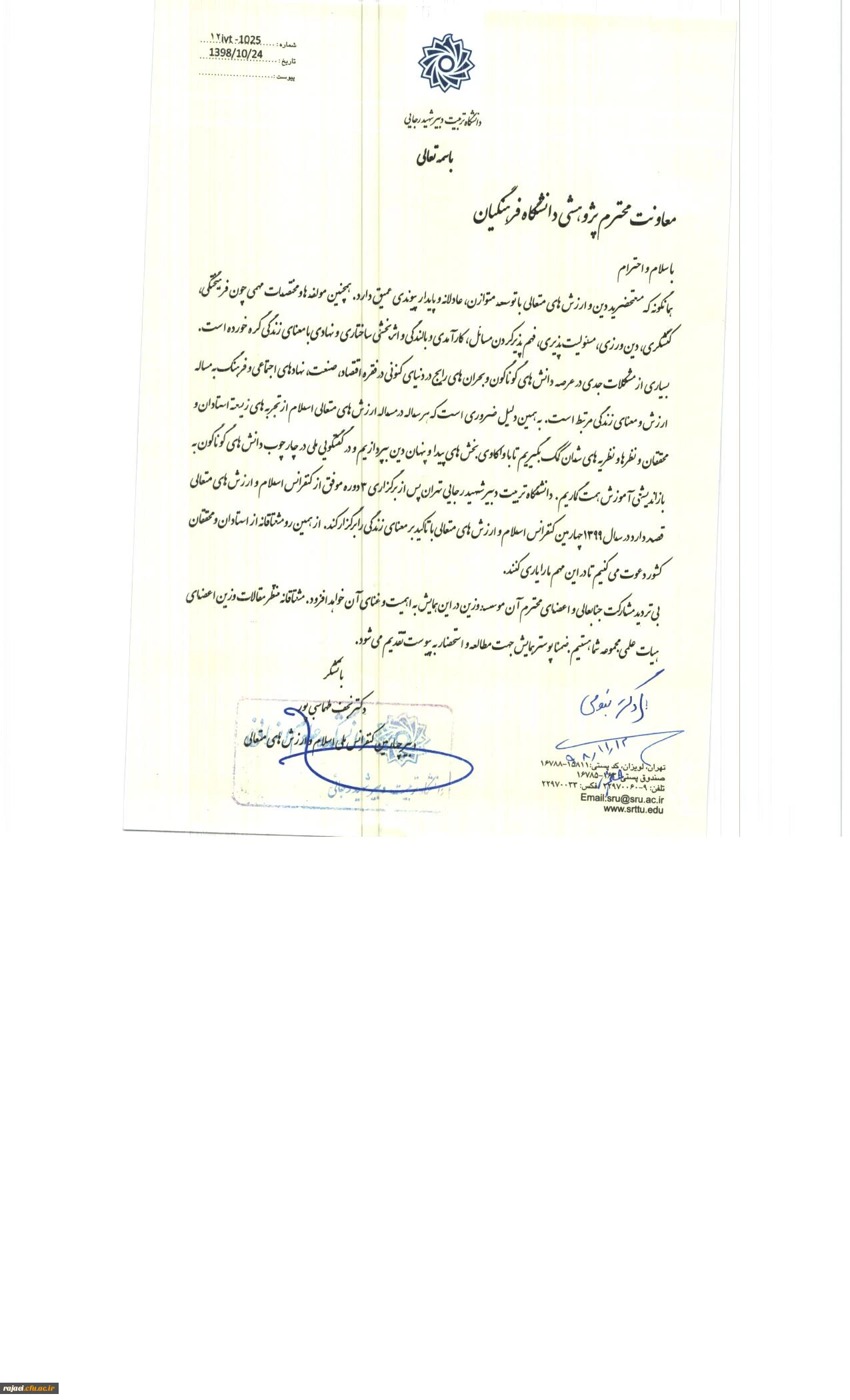 امتیاز دهید : نامه فراخوان چهارمین کنفرانس ملی اسلام و ارزشهای متعالی پنجشنبه 1 اسفند 1398 ساعت 12:00