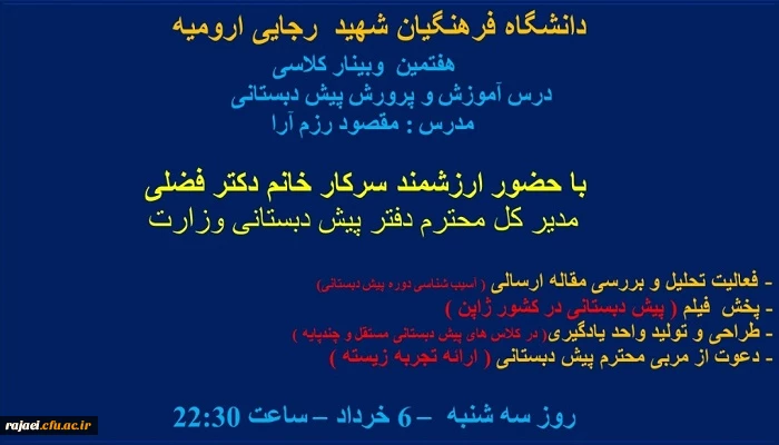 هفتمین وبینار کلاسی درس آموزش و پرورش پیش دبستانی دانشگاه فرهنگیان شهید رجایی ارومیه برگزار شد 4