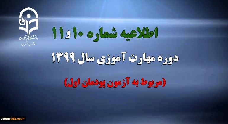 امتیاز دهید : اطلاعیه شماره 10 و 11 دوره مهارت آموزی سال 1399 (مربوط به آزمون پودمان اول) یکشنبه 8 تیر 1399 ساعت 16:54