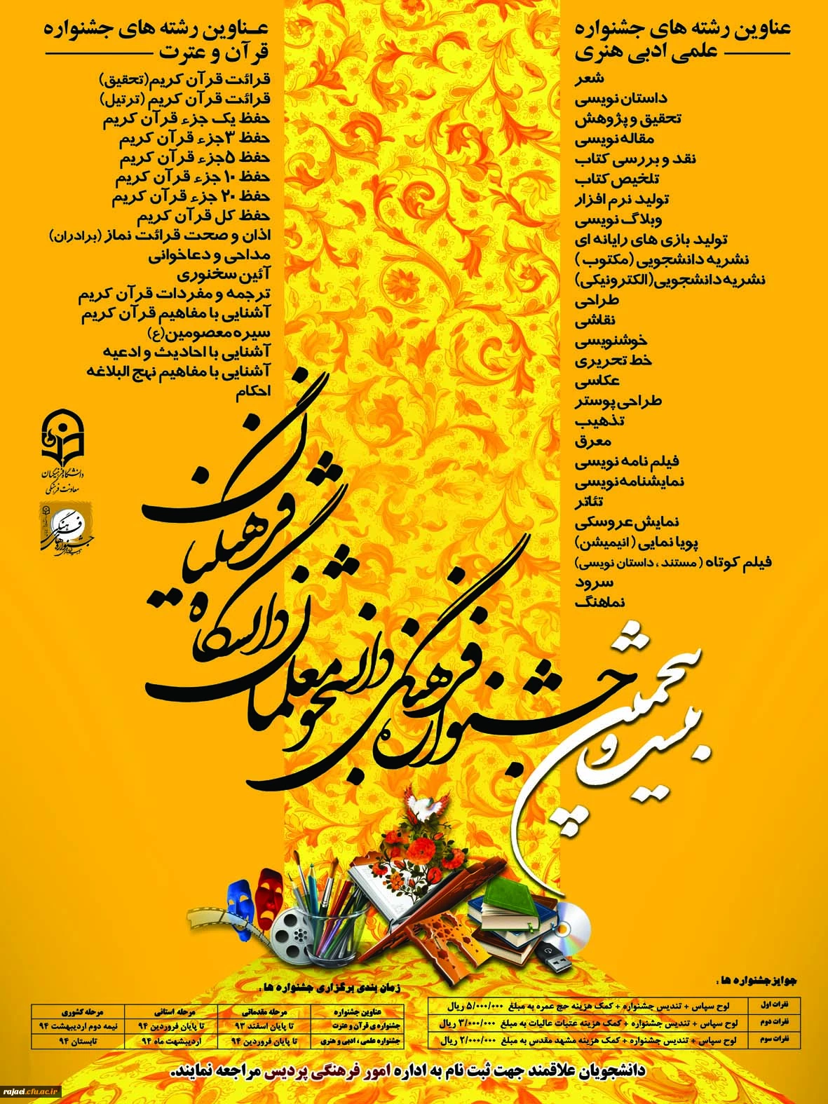 امتیاز دهید : پوستر و شیوه نامه بیست و پنجمین جشنواره فرهنگی و هنری دانشجویان دانشگاه فرهنگیان پنجشنبه 23 بهمن 1393 ساعت 12:36