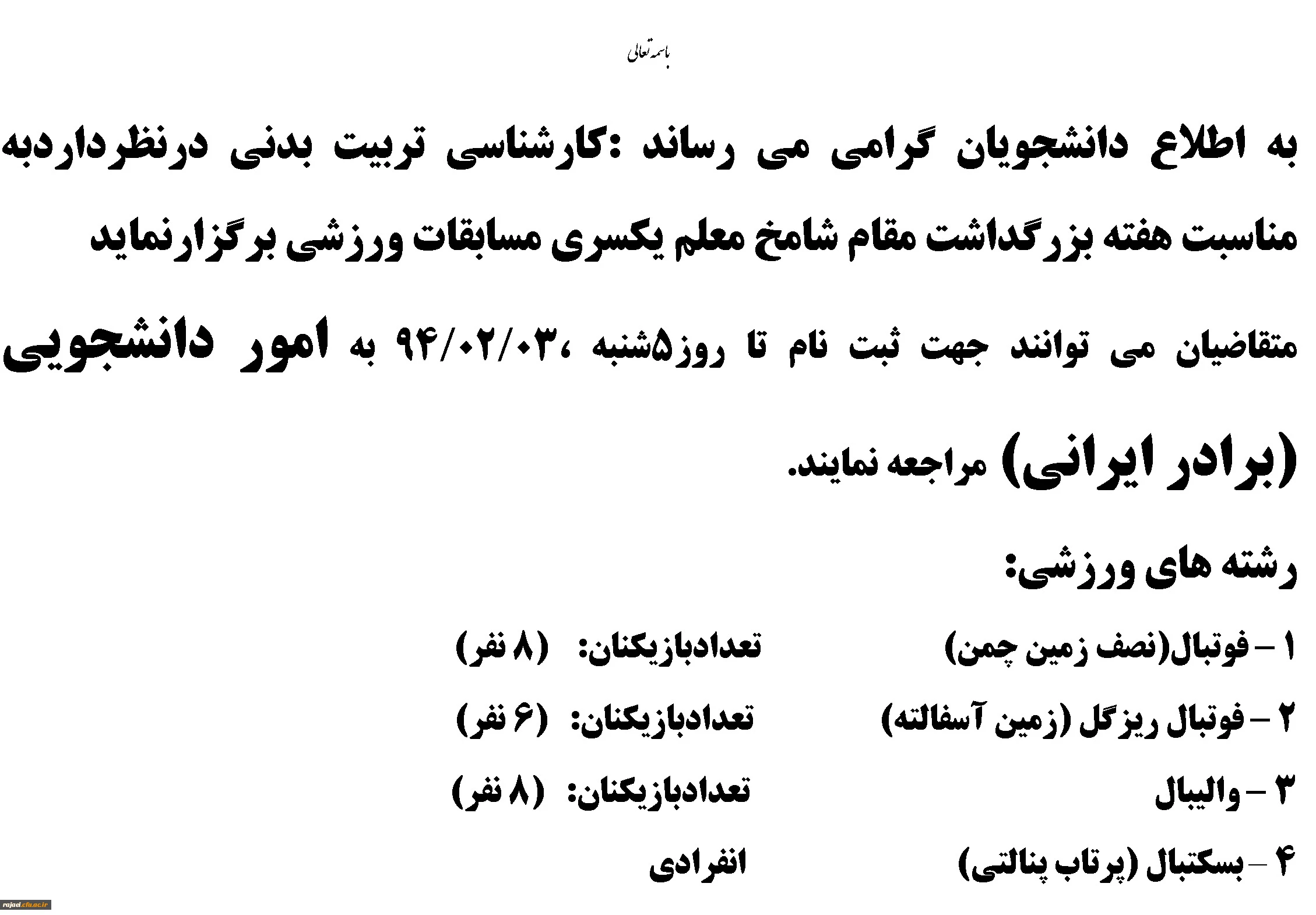 مسابقات ورزشی به مناسبت بزرگداشت هفته معلم