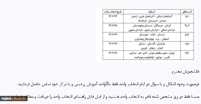جدول انتخاب واحد