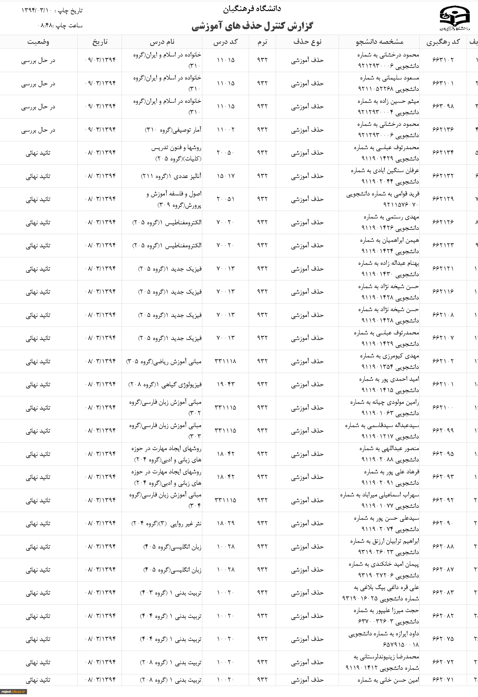امتیاز دهید : لیست دانشجویان محروم به علت غیبت بیش از ساعات مقرر قانونی 2 یکشنبه 10 خرداد 1394 ساعت 9:47