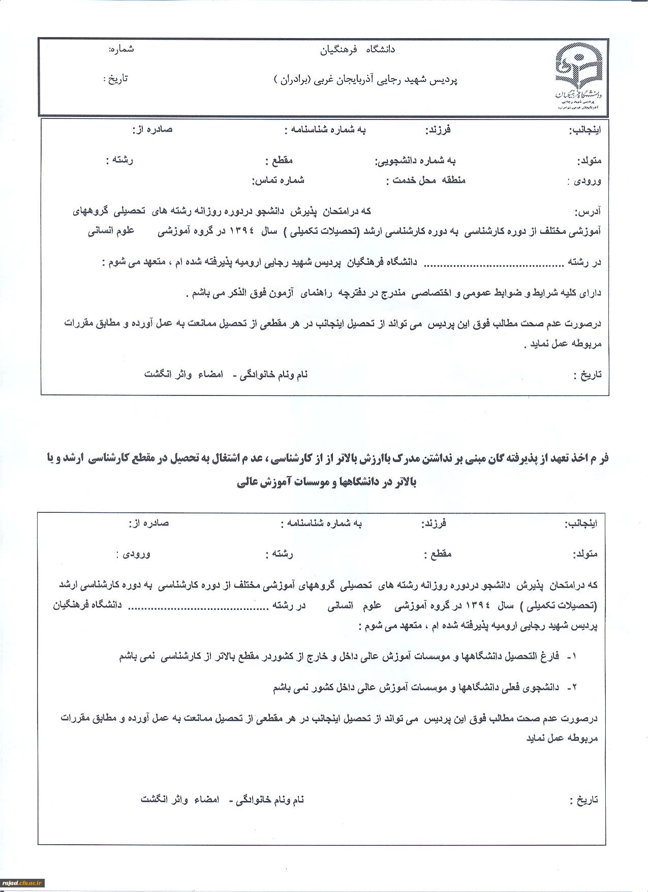 فرم های کارشناسی ارشد
